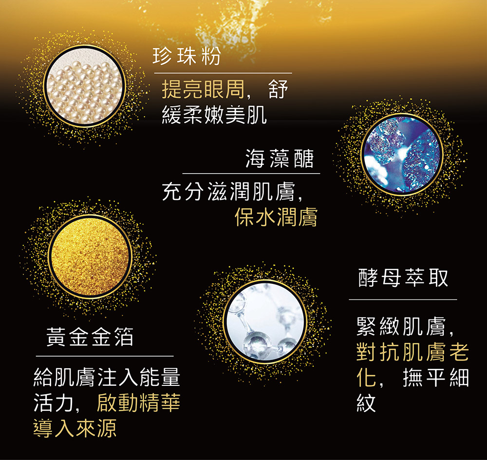 1.添加黃金金箔、珍珠粉、海藻糖、酵母萃取
