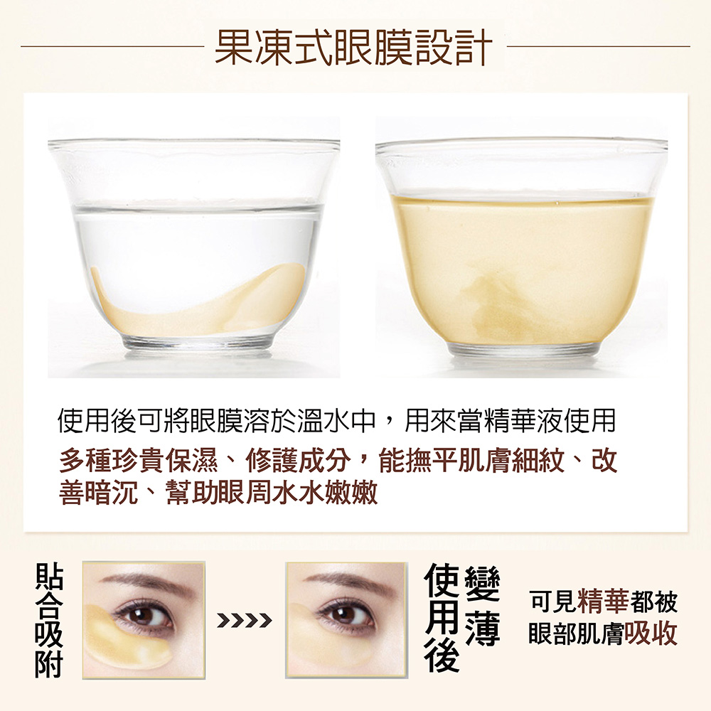 5.果凍材質讓眼尾眼袋完全包覆,精華一滴不漏好吸收,完美密封蓋可以保值又保鮮,鎖住眼膜不讓精華跑掉
