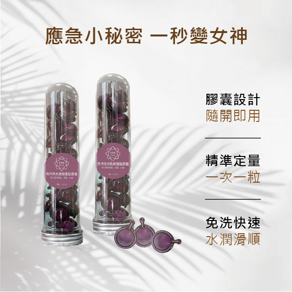 免沖洗護髮膠囊系列一抹改善頭髮乾澀毛躁、頭髮打結、頭髮斷裂、頭髮分岔等困擾,使用膠囊設計,隋開即可、精準定量,一次一顆就行、免洗快速,讓你的秀髮水潤滑順。免沖洗護髮膠囊富含不同的維生素,不同的植物萃取物,可滋潤滋養毛髮,改善乾燥髮質,使頭髮柔順富有彈性。輕盈不膩,一抹一粒,秀髮亮澤、柔順。