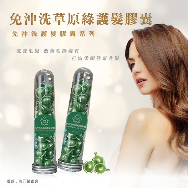 免沖洗護髮膠囊系列一抹改善頭髮乾澀毛躁、頭髮打結、頭髮斷裂、頭髮分岔等困擾,使用膠囊設計,隋開即可、精準定量,一次一顆就行、免洗快速,讓你的秀髮水潤滑順。免沖洗護髮膠囊富含不同的維生素,不同的植物萃取物,可滋潤滋養毛髮,改善乾燥髮質,使頭髮柔順富有彈性。輕盈不膩,一抹一粒,秀髮亮澤、柔順。