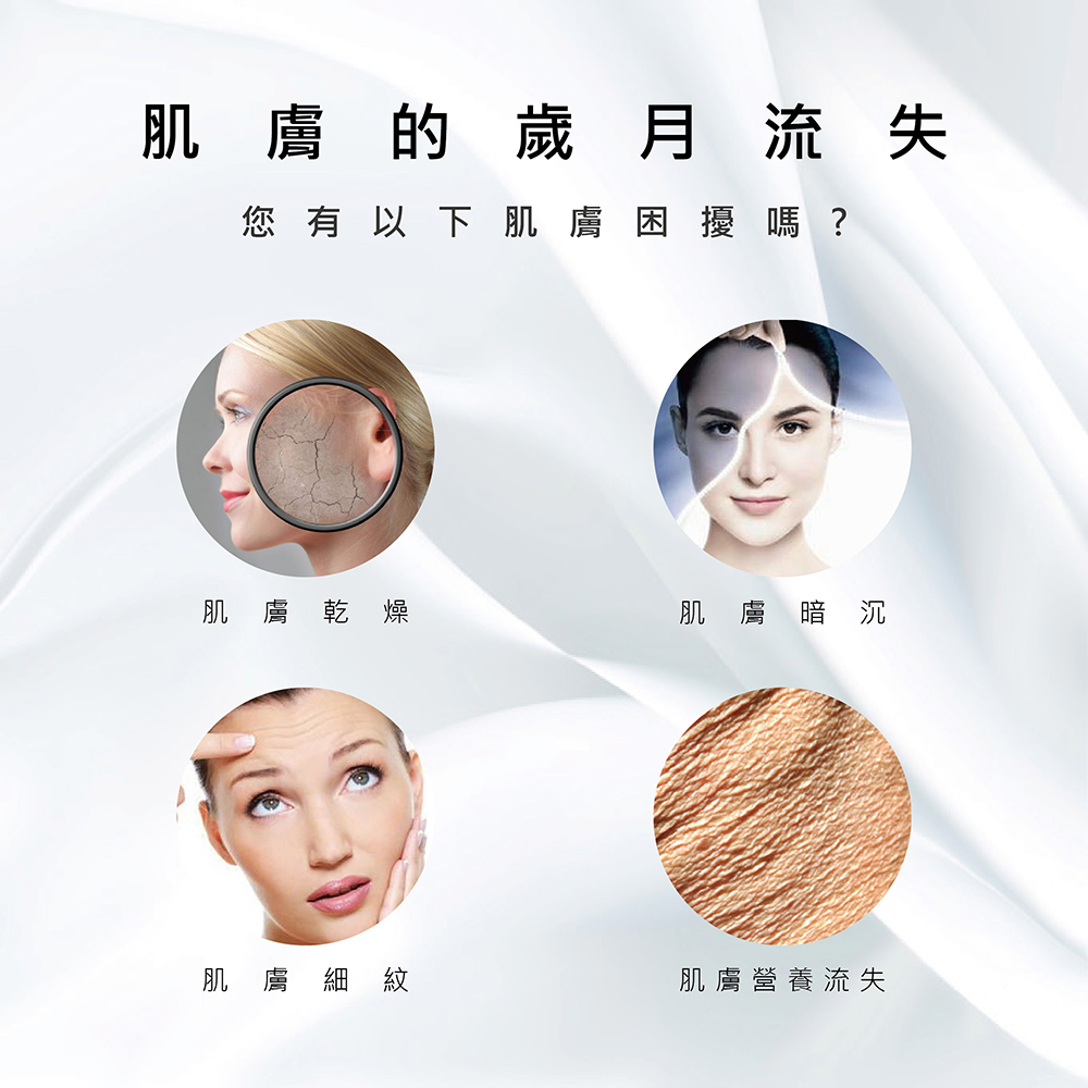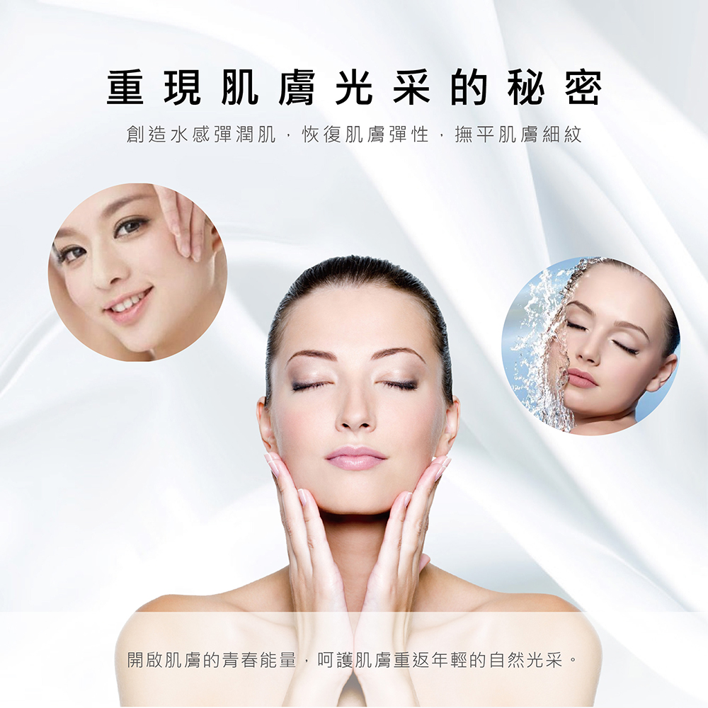 潤澤水嫩肌膚,回復肌膚彈性,使肌膚由內而外恢復光澤亮麗