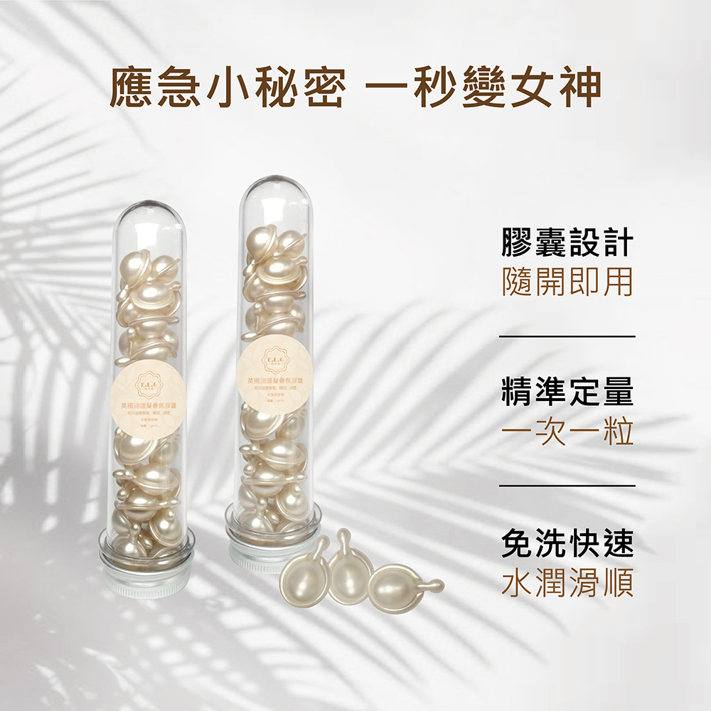 免沖洗護髮膠囊系列一抹改善頭髮乾澀毛躁、頭髮打結、頭髮斷裂、頭髮分岔等困擾,使用膠囊設計,隋開即可、精準定量,一次一顆就行、免洗快速,讓你的秀髮水潤滑順。免沖洗護髮膠囊富含不同的維生素,不同的植物萃取物,可滋潤滋養毛髮,改善乾燥髮質,使頭髮柔順富有彈性。輕盈不膩,一抹一粒,秀髮亮澤、柔順。